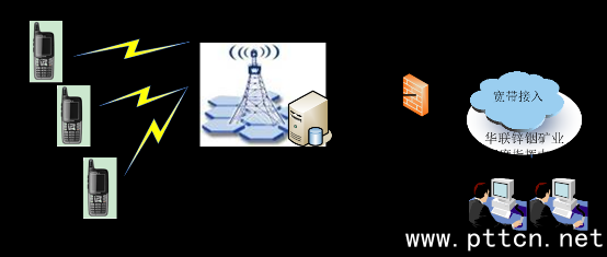 利用基于GoTa技術(shù)的天翼對講業(yè)務(wù),華聯(lián)鋅銦礦業(yè)能夠以“零”成本快速建立自己的集群調(diào)度虛擬專網(wǎng)系統(tǒng),并且實(shí)現(xiàn)企業(yè)內(nèi)部集群調(diào)度管理。華聯(lián)鋅銦礦業(yè)虛擬專網(wǎng)內(nèi)通信和工作調(diào)度時(shí),就如同使用自己建的網(wǎng)絡(luò)一樣,對自己的用戶具有高度的控制權(quán)限,通信具有高度的保密性,而且不同虛擬專網(wǎng)之間通信不會(huì)產(chǎn)生干擾和失密。GoTa技術(shù)能充做到平戰(zhàn)結(jié)合,平時(shí)可以公眾移動(dòng)用戶共享網(wǎng)絡(luò)資源;但在突發(fā)情況下,華聯(lián)鋅銦礦業(yè)可以獨(dú)占網(wǎng)絡(luò)資源,確定指揮調(diào)度工作優(yōu)先。華聯(lián)鋅銦礦業(yè)天翼對講虛擬專網(wǎng)組網(wǎng)方式如下: