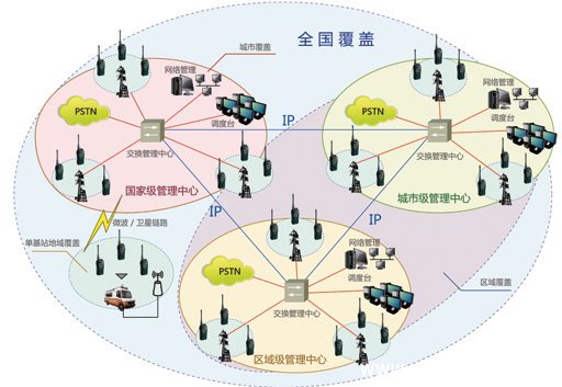 滿(mǎn)足多個(gè)地點(diǎn)無(wú)線(xiàn)用戶(hù)需要互聯(lián)互通的需求,或者需要在指揮中心對(duì)多個(gè)地點(diǎn)的手臺(tái)車(chē)臺(tái)用戶(hù)進(jìn)行指揮調(diào)度的需求。例如,地鐵線(xiàn)路,整個(gè)城市的公安,消防系統(tǒng)等。