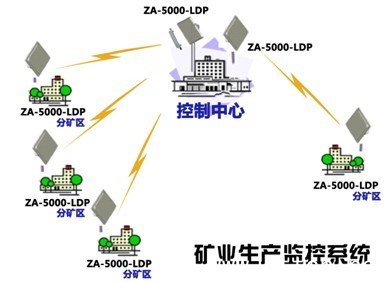 ZA-5000-LDP無線基站設(shè)備可安裝于行政主管部門的控制中心樓頂,實現(xiàn)點對點橋連各個分散的分礦區(qū);配合大角度的平板天線后,實現(xiàn)點對多點橋連比較集中的各個分礦區(qū)。各分礦區(qū)啟用ZA-5000-LDP設(shè)備與控制中心構(gòu)建無線局域網(wǎng)后,一定程度上簡化了設(shè)備的安裝,降低了網(wǎng)絡(luò)故障出現(xiàn)的概率,保障了安全生產(chǎn)無線管理系統(tǒng)的穩(wěn)定運行。