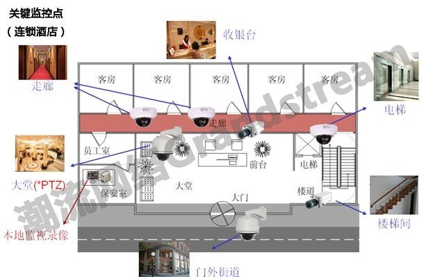采用潮流網(wǎng)絡(luò)提供的網(wǎng)絡(luò)監(jiān)控平臺(tái)來加強(qiáng)管理和提高各個(gè)門市的服務(wù)質(zhì)量。由于是連鎖酒店,所以高層主管無法時(shí)時(shí)刻刻在各個(gè)酒店內(nèi)管理,讓高層對(duì)于酒店內(nèi)的營運(yùn)管理十分頭痛,所以當(dāng)主管在裝設(shè)監(jiān)控系統(tǒng)時(shí)要求希望達(dá)到透過Internet的集中監(jiān)控、分散管理,監(jiān)控中心的操作平臺(tái)方面希望能使用人性化的界面簡單不繁瑣。潮流網(wǎng)絡(luò)的監(jiān)控系統(tǒng)可展開樹狀目錄進(jìn)行不同地域的階層式管理,高層主管可透過網(wǎng)絡(luò)進(jìn)行“跨地域、跨網(wǎng)域”的實(shí)時(shí)監(jiān)看,隨時(shí)可掌控酒店內(nèi)的營運(yùn)狀況,無需再親自到酒店。