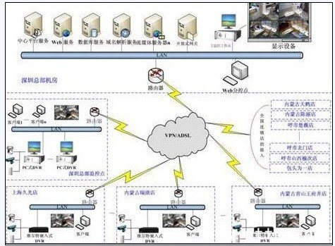 主頁(http://www.130131.com):珠寶行業(yè)網(wǎng)絡視頻監(jiān)控系統(tǒng)方案分析 一、實現(xiàn)功能 根據(jù)某珠寶公司的實際情況,公司在整個系統(tǒng)設計之初,主要考慮到客戶各種使用需求及日后的擴容性。最終實現(xiàn)如下幾大功能: 1、實現(xiàn)本地監(jiān)控、存儲功能。店內管理人員可以根據(jù)需要了解到店的一切發(fā)生情況; 2、實現(xiàn)了多級權限訪問。以店、區(qū)域、大區(qū)、總部等不同的級別劃分監(jiān)控管理權限,各級管理人員根據(jù)工作內容可實時監(jiān)管到任何負責區(qū)域的情況; 3、實現(xiàn)遠程集中存儲。并可靈活設置集中存儲內容,有針對性的保存各種重點監(jiān)控資料; 4、實現(xiàn)復雜網(wǎng)絡適應。由于各個連鎖店情況不同,“訊維集中監(jiān)控管理平臺”實現(xiàn)了VPN、ADSL、寬帶等各種網(wǎng)絡結構的接入,并根據(jù)網(wǎng)絡性能的不同自適應視頻碼流的大小,保證視頻傳輸?shù)膬?yōu)質性; 5、聯(lián)動報警、電子地圖。各個連鎖店內實現(xiàn)了報警系統(tǒng)和監(jiān)控系統(tǒng)的聯(lián)動,并通過電子地圖直觀的體現(xiàn)出來,當出現(xiàn)緊急事件系統(tǒng)能及時通知到各級相關人員; 6、系統(tǒng)具有極強的擴展能力。目前該系統(tǒng)已完成對全國范圍內37家珠寶連鎖店的監(jiān)控系統(tǒng)聯(lián)網(wǎng),但隨著公司的發(fā)展陸續(xù)會有更多連鎖店的出現(xiàn)!坝嵕S集中監(jiān)控管理平臺”具有極好的系統(tǒng)擴展能力,用戶不需重復投資即可實現(xiàn)系統(tǒng)的擴容。 二、系統(tǒng)結構 整個監(jiān)控系統(tǒng)采用分布式實施,集中管理的方式實現(xiàn)。即在每個連鎖店內建立相對獨立的監(jiān)控、報警系統(tǒng),利用Internet網(wǎng)絡為傳輸介質,將各個獨立的子系統(tǒng)接入到深圳總部的“訊維集中監(jiān)控管理平臺”中。下文根據(jù)系統(tǒng)的前端子系統(tǒng)、網(wǎng)絡傳輸系統(tǒng)、管理系統(tǒng)三個方面做簡要說明。