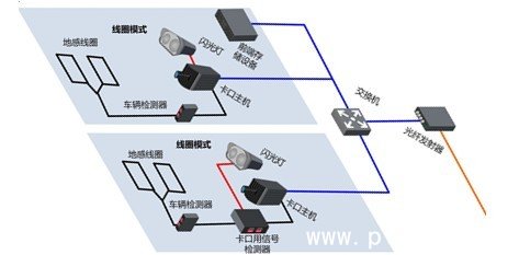 2.3 智能交通卡口分類 目前卡口的分類主要根據(jù)檢測方式及監(jiān)控能力上進行分類。 從監(jiān)控能力上,主要從監(jiān)控車道數(shù)量上劃分:一車道用140W像素像機、200W像素像機;兩車道采用200W像素像機(寬屏);三車道使用500W像素像機、四車道使用800W像素像機(目前僅少數(shù)廠家如大華股份等有此方案); 從檢測方式上一般分為:線圈檢測模式、視頻檢測模式、雷達檢測模式;在此基礎(chǔ)之上,又衍生出線圈、視頻切換模式及雷達、視頻切換模式,這樣既提升了系統(tǒng)應(yīng)用方式的靈活性,同時也很大程度上提高了系統(tǒng)的穩(wěn)定可靠性。 線圈檢測型卡口前端框架圖:
