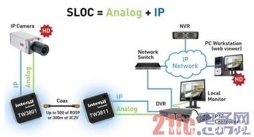視頻監(jiān)控網(wǎng)絡(luò)架構(gòu)圖 與傳統(tǒng)模擬監(jiān)控系統(tǒng)的兼容性:960H模擬高清解決方案的兼容性非常好,前端960H攝像機(jī)可以接到普通DVR使用,后端960H DVR可以接普通模擬攝像機(jī),傳輸使用目前的通用同軸電纜。同時,960H不只兼容傳統(tǒng)的標(biāo)清視頻規(guī)范,更可以將圖像分辯率提升30%以上,使得彩色視頻圖像可達(dá)650線,黑白圖像可達(dá)700線。此外,因為960H的分辯率是960X576(D1的分辨率是576*704),恰恰是1080P的1/4,用戶還可順暢過渡到1080P系統(tǒng)。其次960H產(chǎn)品的安裝使用延續(xù)了原模擬系統(tǒng)的安裝方式和習(xí)慣,安裝使用方法與目前監(jiān)控系統(tǒng)相同,布線雖然比網(wǎng)絡(luò)布線復(fù)雜但與原來模擬攝像機(jī)完全一樣,可以直接沿用以前布好的線纜,且工程商積累的安裝調(diào)試維護(hù)經(jīng)驗完全可以適用在960H系統(tǒng)中,不會像網(wǎng)絡(luò)監(jiān)控方案一樣需要工程商重新學(xué)習(xí)了解網(wǎng)絡(luò)維護(hù)、判斷及施工。 與IP高清和HD-SDI的穩(wěn)定性比較:模擬視頻監(jiān)控系統(tǒng)經(jīng)歷了多年的發(fā)展完善,已形成了性能和品質(zhì)相對穩(wěn)定的監(jiān)控系統(tǒng)。使用時現(xiàn)場監(jiān)視沒有延時及可做到全實(shí)時,網(wǎng)絡(luò)攝像機(jī)的實(shí)時性和延時性是攝像機(jī)本身不能解決的問題,是由系統(tǒng)整體的構(gòu)成造成的。HD-SDI監(jiān)控可以做到實(shí)時和延時少,但是傳輸成本比較高。而960H攝像機(jī)是模擬攝像機(jī)的衍生物,借助原有模擬視頻監(jiān)控系統(tǒng)網(wǎng)絡(luò),圖像發(fā)送無延時,畫質(zhì)因為沒有經(jīng)由編解碼,圖像復(fù)原真切。 “960H模擬攝像機(jī)有著較低的價格,因此在一些具有高清要求而且預(yù)算又不高的場合,將得到廣泛的應(yīng)用。另外高清晰模擬攝像機(jī)可以讓那些既成的模擬線纜以及相應(yīng)設(shè)備不至于廢棄,避免了資源的浪費(fèi)。此外,除了960H產(chǎn)品,我們還提供魚眼圖像校正技術(shù)、MegaQ和SLOC技術(shù),從而為眾多需要開發(fā)低預(yù)算又有高清性能的視頻監(jiān)控方案開辟了更為寬廣的道路!标愑钕壬硎。這里的SLOC是Intersil一種創(chuàng)新的調(diào)制解調(diào)器物理層技術(shù),整合了Intersil在視頻信號處理,數(shù);旌闲盘柼幚砩系膫鹘y(tǒng)優(yōu)勢,支持高分辨率百萬像素和基于IP的高清攝像頭使用現(xiàn)有模擬有線閉路電視同軸電纜基礎(chǔ)設(shè)施,無需安裝新電纜,且支持最長500米同軸電纜距離,而無需使用中繼器。 “安防領(lǐng)域是Intersil公司的重中之重,我們正在結(jié)合原有Intersil的技術(shù)優(yōu)勢和已收購的Techwell的技術(shù)優(yōu)勢不斷進(jìn)行技術(shù)的革新、產(chǎn)品的革新、方案的革新。同時我們也在加大生態(tài)系統(tǒng)的建設(shè)和完善,聯(lián)合行業(yè)的上游和下游,一起演奏安防style。”陳宇先生表示。 據(jù)悉目前Intersil已經(jīng)聯(lián)合包括Sony、Altronix、Pinetron、聰泰科技,以及海康威視在內(nèi)的近100家全球公司創(chuàng)建了致力于標(biāo)準(zhǔn)化和解決方案推廣的SLOC合作生態(tài)系統(tǒng),來加快面向視頻監(jiān)控市場的混合式基于IP的系統(tǒng)在全球的采用和實(shí)施。此外,Intersil還發(fā)布了一項SLOC一致性規(guī)范,用于通過保證硬件滿足針對合格產(chǎn)品的電氣一致性要求,來驗證達(dá)到混合視頻的質(zhì)量標(biāo)準(zhǔn)。目前Allion Labs已獲得測試機(jī)構(gòu)資格來執(zhí)行SLOC一致性測試。帶有SLOC標(biāo)識的所有產(chǎn)品都必須接受認(rèn)證。