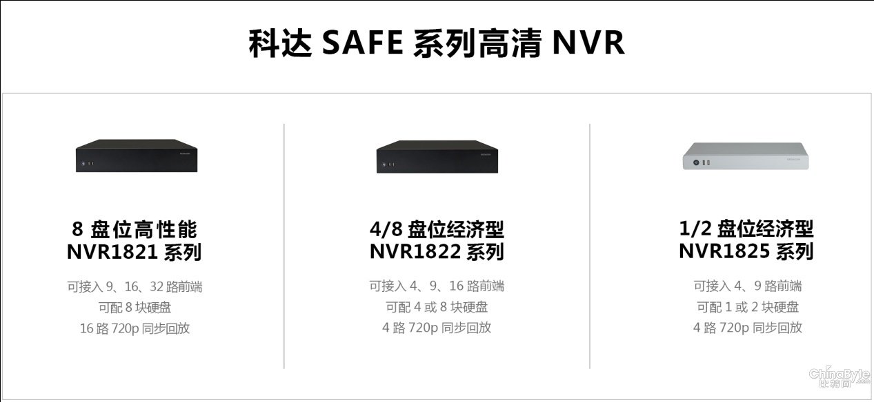 主頁(yè)(http://www.130131.com):性能成本兼顧 科達(dá)推SAFE系列通用高清監(jiān)控產(chǎn)品 網(wǎng)絡(luò)通信中國(guó)網(wǎng)(www.voipchina.cn)2013年5月29日消息,隨著技術(shù)的日益成熟和產(chǎn)品成本的不斷下降,IP高清監(jiān)控正在越來(lái)越快地從大型行業(yè)市場(chǎng)向通用型行業(yè)、商業(yè)市場(chǎng)延伸。在此過(guò)程中,NVR的市場(chǎng)地位越來(lái)越突出,“NVR+高清網(wǎng)絡(luò)攝像機(jī)”的組合逐漸成為通用高清監(jiān)控部署的主要模式。 為此,科達(dá)推出了全新的SAFE系列高清監(jiān)控產(chǎn)品。該系列產(chǎn)品以NVR為核心,同時(shí)涵蓋高清網(wǎng)絡(luò)攝像機(jī)、平臺(tái)以及相關(guān)輔助設(shè)備。通過(guò)主打“NVR+高清網(wǎng)絡(luò)攝像機(jī)”的組合,SAFE系列高清監(jiān)控產(chǎn)品可以為用戶提供高性價(jià)比的端到端高清監(jiān)控解決方案。 高性能與低成本的最佳平衡。與目前市場(chǎng)上的高清監(jiān)控產(chǎn)品要么價(jià)格很高、要么性能很低端不同,科達(dá)SAFE系列高清監(jiān)控產(chǎn)品真正實(shí)現(xiàn)了高性能與低成本的最佳平衡,可以為用戶打造高性價(jià)比的高清監(jiān)控系統(tǒng)。 完整而開放。盡管科達(dá)SAFE系列高清監(jiān)控產(chǎn)品涵蓋了NVR、高清網(wǎng)絡(luò)攝像機(jī)、平臺(tái)等全線設(shè)備,但這些設(shè)備均具備完善的開放性,可與業(yè)界主流品牌產(chǎn)品兼容互通。用戶可以自主選擇,靈活搭配,以組建多樣化的高清監(jiān)控系統(tǒng)。 靈活適應(yīng)不同規(guī)模的高清監(jiān)控部署需求。通過(guò)科達(dá)SAFE系列高清產(chǎn)品,可以靈活部署不同規(guī)模的端到端高監(jiān)控系統(tǒng)。對(duì)于幾路到幾十路的小型系統(tǒng),可采用最簡(jiǎn)單的單臺(tái)NVR+高清網(wǎng)絡(luò)攝像機(jī)的組合;對(duì)于幾十路到上百路的系統(tǒng),可采用多臺(tái)NVR堆疊+高清網(wǎng)絡(luò)攝像機(jī)的組合;對(duì)于監(jiān)控點(diǎn)規(guī)模更多或需要多級(jí)聯(lián)網(wǎng)的系統(tǒng),可在分布式NVR+高清網(wǎng)絡(luò)攝像機(jī)組合的基礎(chǔ)上,增加監(jiān)控管理平臺(tái)進(jìn)行集中的聯(lián)網(wǎng)管理。 SAFE系列NVR 科達(dá)此次推出的SAFE系列NVR不僅繼承了科達(dá)在NVR領(lǐng)域的深厚積累,而且還在開放性、智能檢索、易用性等方面取得了進(jìn)一步的提升。首批發(fā)布的產(chǎn)品包括NVR1821、NVR1822、NVR1825三個(gè)系列: l NVR1825,4-9路經(jīng)濟(jì)型系列,1塊或2塊硬盤,4路720p高清錄像回放; l NVR1822,4-16路經(jīng)濟(jì)型系列,4塊或8塊硬盤,4路720p高清錄像回放; l NVR1821,32路高性能系列,8塊硬盤,16路720p高清錄像回放。