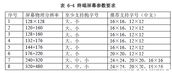 1)終端主屏的分辨率、字號(hào)應(yīng)選用下表的數(shù)值,允許略有不同: