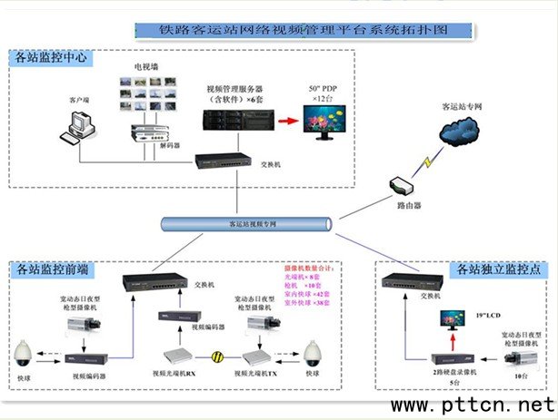 主頁(http://www.130131.com):詳解鐵路安防系統(tǒng)三級架構(gòu) 鐵路系統(tǒng)中的視頻監(jiān)控系統(tǒng)一般分為兩部分:一部分稱為“綜合視頻監(jiān)控系統(tǒng)”,一部分稱為“CCTV監(jiān)控系統(tǒng)”。“綜合視頻監(jiān)控系統(tǒng)”作為“通信系統(tǒng)”內(nèi)“通信業(yè)務(wù)網(wǎng)”的一個子系統(tǒng),負(fù)責(zé)車站重點部分(咽喉區(qū)),區(qū)間公跨鐵區(qū)段,通信、信號機房內(nèi),牽引供電、電力供電機房內(nèi)、外等的監(jiān)控;“CCTV監(jiān)控系統(tǒng)”作為“信息系統(tǒng)”內(nèi)“旅客服務(wù)系統(tǒng)”的一個子系統(tǒng),采用網(wǎng)絡(luò)化的視頻監(jiān)控系統(tǒng),實現(xiàn)站前廣場、進站咽喉、進站大廳、候車室、站臺等處圖像監(jiān)視。兩者分開建設(shè),但緊密相關(guān),CCTV監(jiān)控系統(tǒng)僅配置前端設(shè)備、后端顯示設(shè)備、視頻存儲設(shè)備、視頻服務(wù)器等視頻管理設(shè)備組成,由四電系統(tǒng)集成項目中的綜合視頻監(jiān)控系統(tǒng)統(tǒng)一考慮。 詳解鐵路安防系統(tǒng)三級架構(gòu) 目前在鐵路系統(tǒng)中的“CCTV監(jiān)控系統(tǒng)”就是我們常提到的視頻監(jiān)控系統(tǒng),該系統(tǒng)根據(jù)鐵路的運行模式,可把鐵路安防的網(wǎng)絡(luò)拓?fù)浣Y(jié)構(gòu)設(shè)計為三級樹型拓?fù)浣Y(jié)構(gòu),一級節(jié)點為鐵路局監(jiān)控中心,二級節(jié)點為鐵路局下屬各站監(jiān)控前端,三級節(jié)點為各站獨立監(jiān)控點,詳見如圖例一。 ![]() 一級節(jié)點主要是各鐵路局監(jiān)控中心,相當(dāng)于平安城市的城市公安局總指揮中心。其連接各個鐵路系統(tǒng),并根據(jù)需要有選擇地調(diào)用、控制、回放各個鐵路的視頻資源,一般設(shè)置工作站、目錄數(shù)據(jù)服務(wù)器、重要錄像資料的備份服務(wù)器等。 二級節(jié)點主要為鐵路局下屬各站監(jiān)控前端,其存在大量的用戶,對本區(qū)段的視頻資源進行調(diào)用、回放、PTZ控制等。通常,在路局節(jié)點,一般設(shè)置多個客戶端工作站、存儲陣列、存儲服務(wù)器、流媒體服務(wù)器、解碼器、電視墻等終端,是系統(tǒng)真正的主干,也是應(yīng)用的核心。同時,設(shè)立管理服務(wù)器,可以避免將其設(shè)在各前端監(jiān)控站而帶來的不必要的設(shè)備投資,便于認(rèn)證系統(tǒng)的集中管理。 三級節(jié)點為獨立監(jiān)控點,設(shè)備分布廣,主要負(fù)責(zé)視頻的前端采集、編碼等。信息采集點位置的設(shè)置,原則上以行車室、站臺、道岔區(qū)為主,并充分結(jié)合利用防火、防盜、遠(yuǎn)紅外監(jiān)控、入侵檢測等其他聯(lián)防設(shè)備。 安防技術(shù)發(fā)展歷程 視頻監(jiān)控技術(shù)發(fā)展以來,先后經(jīng)歷了模擬視頻監(jiān)控系統(tǒng)、數(shù)字視頻監(jiān)控系統(tǒng)、模擬數(shù)字混合視頻監(jiān)控系統(tǒng)、IP網(wǎng)絡(luò)視頻監(jiān)控系統(tǒng)等發(fā)展階段。IP網(wǎng)絡(luò)視頻監(jiān)控系統(tǒng)從圖像采集設(shè)備輸出時即為數(shù)字信號,以標(biāo)準(zhǔn)Internet網(wǎng)絡(luò)為傳輸媒介,基于標(biāo)準(zhǔn)TCP/IP協(xié)議,采用流媒體技術(shù),實現(xiàn)視頻在網(wǎng)上的多路復(fù)用傳輸,并通過設(shè)在網(wǎng)上視頻流服務(wù)器,完成視頻流的轉(zhuǎn)發(fā)、報警等操作,以實現(xiàn)整個監(jiān)控系統(tǒng)的指揮、調(diào)度、存貯、授權(quán)控制等功能。IP網(wǎng)絡(luò)視頻監(jiān)控系統(tǒng)不僅具有傳統(tǒng)的本地數(shù)字監(jiān)控系統(tǒng)所具有的計算機快速處理能力、數(shù)字信息抗干擾能力、便于快速查詢記錄、視頻圖像清晰及單機顯示多路圖像等優(yōu)點,而且,能夠切實發(fā)揮寬帶網(wǎng)絡(luò)的優(yōu)勢,通過IP網(wǎng)絡(luò),覆蓋范圍可以到達(dá)的任何地方的監(jiān)控目標(biāo)組合成一個完整的、一體化的系統(tǒng),真正適應(yīng)目前視頻監(jiān)控系統(tǒng)針對遠(yuǎn)程、實時、集中控制的需求。IP網(wǎng)絡(luò)視頻監(jiān)控系統(tǒng)主要有前端視頻采集設(shè)備、視頻數(shù)據(jù)傳輸媒介、中心服務(wù)器、監(jiān)控工作站(客戶端)等幾大部分組成。目前鐵路視頻監(jiān)控系統(tǒng)也普遍采用IP網(wǎng)絡(luò)視頻監(jiān)控系統(tǒng),為火車站、沿線電務(wù)、車務(wù)安全生產(chǎn)視頻監(jiān)控業(yè)務(wù)以及公安、工務(wù)視頻監(jiān)控提供統(tǒng)一的實現(xiàn)平臺。 (中國集群通信網(wǎng) | 責(zé)任編輯:陳曉亮) |