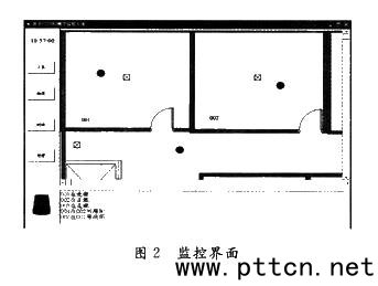 數(shù)據(jù)上傳到基站后,基站通過網(wǎng)口上傳到電腦的監(jiān)控軟件。監(jiān)控軟件采用圖形化方式將節(jié)點的位置示意出來,如圖2所示。