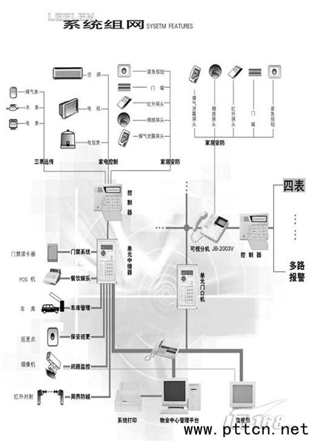 主頁(http://www.130131.com):防入侵可視對講門禁系統(tǒng)淺析 【中國集群通信網(wǎng)】智能化小區(qū)綜合管理系統(tǒng)采用模塊化的設(shè)計理念,可讓用戶根據(jù)需要,靈活地組建自己的網(wǎng)絡(luò),同時,又提供了一體化的信息管理平臺,集樓宇防盜對講、報警求助、四表集抄、監(jiān)視監(jiān)控、門禁、停車場管理、消費一卡通、住戶管理、通訊聯(lián)網(wǎng)、物業(yè)管理為一體,是網(wǎng)絡(luò)化、智能化的管理系統(tǒng)。 系統(tǒng)設(shè)計既采用先進的概念、技術(shù)和方法,又注意結(jié)構(gòu)、設(shè)備和工具的相對成熟。不但能反映當(dāng)今的先進水平,而且系統(tǒng)的開放性和標準性滿足了系統(tǒng)所選用的技術(shù)和設(shè)備的協(xié)同運行能力,系統(tǒng)投資的長期效應(yīng)以及系統(tǒng)功能不斷擴展的需求。系統(tǒng)建設(shè)始終貫徹面向應(yīng)用、注重實效的方針,堅持實用、經(jīng)濟的原則。智能化小區(qū)綜合管理系統(tǒng)以完美的結(jié)構(gòu)設(shè)計、優(yōu)化的網(wǎng)絡(luò)系統(tǒng)、先進的科技產(chǎn)品,展現(xiàn)智能化的園區(qū)、智能化的家居;以“真誠服務(wù)”為宗旨,以“滿足用戶需求”為已任,構(gòu)建信息家園的今天,鋪墊智能家居的明天。 1、系統(tǒng)分析 樓宇防盜對講子系統(tǒng)是本小區(qū)智能管理系統(tǒng)的基礎(chǔ)部分,它有單元門口樓宇主機、室內(nèi)樓宇分機等幾部分構(gòu)成。本JB-2000型系統(tǒng),是經(jīng)過國家建設(shè)部、公安部和廈門市科學(xué)委員會等機構(gòu)認證的系統(tǒng),系統(tǒng)有容量大、很強的適應(yīng)性及兼容性,在樓宇防盜對講的基礎(chǔ)上,可以擴充有住戶耗能表的自動抄收、室內(nèi)智能報警、周界報警、視頻監(jiān)控、感應(yīng)卡門禁及內(nèi)部通訊等不同的子系統(tǒng)。各個子系統(tǒng)利用防盜對講系統(tǒng)網(wǎng)絡(luò)傳輸部分,以及系統(tǒng)前端分機和終端的管理機,在設(shè)置自己的控制器和管理軟件基礎(chǔ)上,便可完成各自的控制功能。因此,本系統(tǒng)具有經(jīng)濟、實用及先進性。 樓宇防盜對講系統(tǒng)為小區(qū)內(nèi)的住戶、物業(yè)管理部門提供了內(nèi)部通訊、視頻監(jiān)控和遙控開關(guān)門等功能,每個小區(qū)來訪者在進入小區(qū)時,經(jīng)保安人員通過防盜對講系統(tǒng)聯(lián)絡(luò)確認后方可進入小區(qū);在小區(qū)單元門口處,再通過樓宇門口主機與室內(nèi)住戶聯(lián)絡(luò),住戶與其通話確認許可后,住戶遙控開啟電鎖讓來訪者進入;同時,門口主機與室內(nèi)分機之間可以雙向通話。 2 、系統(tǒng)特性及功能 樓宇防盜對講系統(tǒng)可以實現(xiàn)的功能有: ●來訪者通過小區(qū)單元門口主機撥叫被訪者的室內(nèi)分機。 ●門口機配有紅外線發(fā)光二極管,保證即使在夜間影像也一樣清晰。 ●分機免掛機功能,分機沒掛好不影響呼叫。 ●振鈴音由單片機產(chǎn)生,悅耳動聽。 ●實時短路自動保護,電鎖自動保護,蓄電池欠壓保護。 ●守候時主機進入低功耗狀態(tài)。 ●停電后可延遲供電48小時。 ●遙控開鎖可靠。 ●采用可靠的一戶一碼制,密碼開鎖。 ●來訪者可以通過門口主機同管理中心通話。 ●戶戶對講,小區(qū)內(nèi)的住戶可以通過中心及門口主機,以實戶與戶之間的通話。 ●門口機可與管理機通話,各門口機可以呼叫管理機并通話,管理機可遙控開鎖。 ●緊急廣播,在緊急情況下,小區(qū)管理中心可以通過中心管理機向小區(qū)內(nèi)各個住戶緊急報警通話。 3 、系統(tǒng)構(gòu)架圖