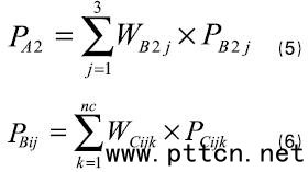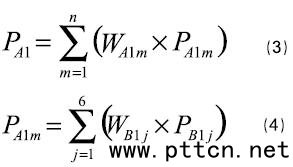 由圖2,可以得到一級(jí)指標(biāo)的評(píng)估值由公式(3)和(4)計(jì)算:
