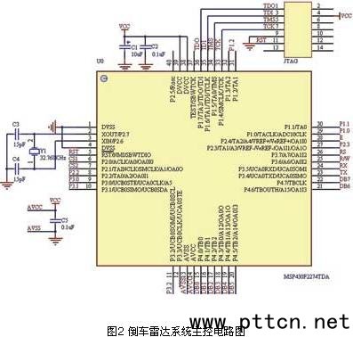 主頁(http://www.130131.com):基于MSP430F2274單片機的倒車?yán)走_設(shè)計 隨著人們對汽車輔助駕駛系統(tǒng)智能化要求的提高和汽車電子系統(tǒng)的網(wǎng)絡(luò)化發(fā)展,新型的倒車?yán)走_應(yīng)能夠連續(xù)測距并顯示障礙物距離,并具有通信功能,能夠把數(shù)據(jù)發(fā)送到汽車總線上去。以往的倒車?yán)走_設(shè)計使用的元器件較多,功能也較簡單。本文介紹的基于新型高性能超低功耗單片機MSP430F2274的倒車?yán)走_可以彌補以往產(chǎn)品的不足。 系統(tǒng)總體設(shè)計