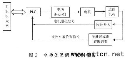 系統(tǒng)在準(zhǔn)值階段時(shí),首先,系統(tǒng)上電后,通過(guò)軟件的信息交互對(duì)CCD進(jìn)行操作。一方面按照要求設(shè)置CCD的各種狀態(tài)參數(shù);另一方面檢測(cè)CCD的工作狀態(tài)(加電等)是否完好。外觸發(fā)信號(hào)到來(lái)后,CCD曝光采集圖像,圖像保存在幀存儲(chǔ)器中,當(dāng)接收到網(wǎng)絡(luò)調(diào)用指令后,CCD通過(guò)網(wǎng)絡(luò)上傳所采集的圖像。其次,準(zhǔn)值FEP接收到圖像后計(jì)算應(yīng)加給步進(jìn)電機(jī)的脈沖數(shù),并把這個(gè)脈沖數(shù)傳給PLC。再次,位置調(diào)節(jié)控制單元采用PLC作為中央處理中心,由PLC給出事先經(jīng)過(guò)計(jì)算的脈沖信號(hào)和方向信號(hào),經(jīng)脈沖分配器以及細(xì)分電路產(chǎn)生步進(jìn)電機(jī)工作所需的各相脈沖信號(hào),再通過(guò)光電耦合器和功率驅(qū)動(dòng)電路對(duì)信號(hào)進(jìn)行放大,產(chǎn)生電機(jī)所需的激勵(lì)電壓并驅(qū)動(dòng)電機(jī)工作。最后,步進(jìn)電機(jī)到達(dá)預(yù)設(shè)的位置后,通過(guò)安裝在電機(jī)上的軸角編碼器來(lái)反饋電機(jī)運(yùn)行的數(shù)據(jù)及電機(jī)的位置,并上報(bào)給現(xiàn)場(chǎng)控制中心,如果達(dá)到正確的位置,則停止動(dòng)作,如果位置不正確,則重復(fù)計(jì)算脈沖再命令步進(jìn)電機(jī)運(yùn)動(dòng)。如圖3所示。
