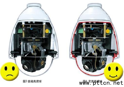 綜上所述,如此問題的產(chǎn)生原因之一就是球機內(nèi)部環(huán)境惡劣所致,如果改善球機內(nèi)部的環(huán)境,將能有效解決上述問題,因此,充氮型高速球應(yīng)運而生。