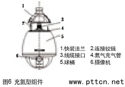 密封與泄漏 充氮高速球在密封和防止泄漏上要求較高,如圖6所示的軍標線纜接口,利用其良好的密封性,將內(nèi)部線束引出,起到橋接的作用。且經(jīng)過抽真空和充氮的接口,在密封性上也要高要求,球罩與球桶,法蘭與球桶等等,膠皮帶、密封螺釘?shù)榷夹枰厥庑枨笤O(shè)計,越是細節(jié)的地方越是體現(xiàn)出來充氮高速球的高防護特點。