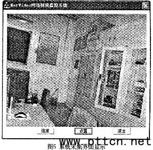 以網(wǎng)絡(luò)上PC機(jī)為客戶端,用VC編寫(xiě)圖像顯示界面。把服務(wù)端采集的圖像傳送至接收端,如圖5所示。實(shí)驗(yàn)表明,系統(tǒng)每秒采集15幀圖像,沒(méi)有停頓感,滿足實(shí)時(shí)性要求。圖5 系統(tǒng)采集界面顯示