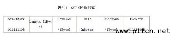 在監(jiān)控時可以根據(jù)現(xiàn)場情況的緊急程度分級處理:一般情況可以使用短信收發(fā),為了保證可靠,每條發(fā)送短信都需要用戶給予相應的一條固定回應;當緊急情況時,可以直接啟動撥打電話功能,通過將存儲在語音芯片的語音播放出來進行語音通話,以體現(xiàn)現(xiàn)場情況的緊急。 3.串行通信協(xié)議的改進 3.1AHDLC異步串行通信協(xié)議的格式