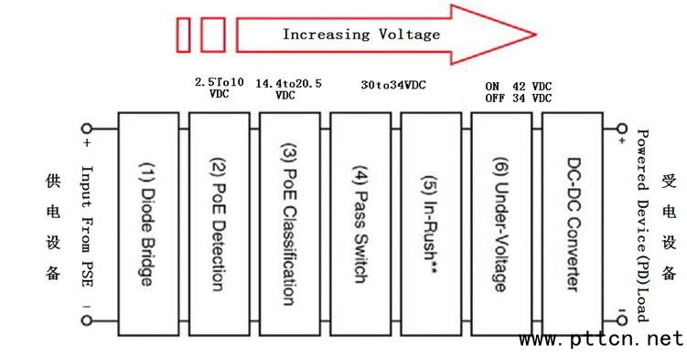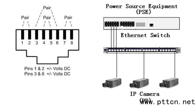 主頁(yè)(http://www.130131.com):淺析安防POE產(chǎn)品模塊化設(shè)計(jì) 一、POE的概念 POE標(biāo)準(zhǔn)為使用以太網(wǎng)的傳輸電纜輸送直流電到POE兼容的設(shè)備定義了兩種方法:一種稱作“中間跨接法”( Mid -Span ),使用以太網(wǎng)電纜中沒(méi)有被使用的空閑線對(duì)來(lái)傳輸直流電,相應(yīng)的Endpoint PSE支持POE功能的以太網(wǎng)交換機(jī)、路由器、集線器或其他網(wǎng)絡(luò)交換設(shè)備。另一種方法是“末端跨接法”(End-Span),是在傳輸數(shù)據(jù)所用的芯線上同時(shí)傳輸直流電,其輸電采用與以太網(wǎng)數(shù)據(jù)信號(hào)不同的頻率。Mid-span PSE是一個(gè)專門(mén)的電源管理設(shè)備,通常和交換機(jī)放在一起。它對(duì)應(yīng)每個(gè)端口有兩個(gè)RJ45插孔,一個(gè)用短線連接至交換機(jī),另一個(gè)連接遠(yuǎn)端設(shè)備?梢灶A(yù)見(jiàn),End-Span會(huì)迅速得到推廣,這是由于以太網(wǎng)數(shù)據(jù)與輸電采用公用線對(duì),因而省去了需要設(shè)置獨(dú)立輸電的專用線,這對(duì)于僅有8芯的電纜和相配套的標(biāo)準(zhǔn)RJ-45插座意義特別重大。 二、POE供電的工作過(guò)程 檢測(cè):一開(kāi)始,PSE設(shè)備在端口輸出很小的電壓,直到其檢測(cè)到線纜終端的連接為一個(gè)支持IEEE 802.3af標(biāo)準(zhǔn)的受電端設(shè)備。 PD端設(shè)備分類:當(dāng)檢測(cè)到受電端設(shè)備PD之后,PSE設(shè)備可能會(huì)為PD設(shè)備進(jìn)行分類,并且評(píng)估此PD設(shè)備所需的功率損耗。 開(kāi)始供電:在一個(gè)可配置時(shí)間(一般小于15μs)的啟動(dòng)期內(nèi),PSE設(shè)備開(kāi)始從低電壓向PD設(shè)備供電,直至提供48V的直流電源。 供電:為PD設(shè)備提供穩(wěn)定可靠48V的直流電,滿足PD設(shè)備不越過(guò) 15.4W的功率消耗。 斷電:若PD設(shè)備從網(wǎng)絡(luò)上斷開(kāi)時(shí),PSE就會(huì)快速地(一般在300~400ms之內(nèi))停止為PD設(shè)備供電,并重復(fù)檢測(cè)過(guò)程以檢測(cè)線纜的終端是否連接PD設(shè)備。