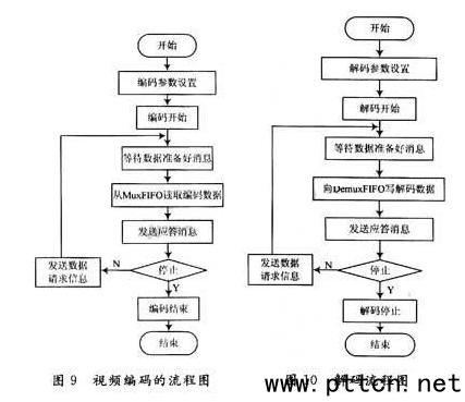 主頁(http://www.130131.com):基于MPEG-4視頻標(biāo)準(zhǔn)數(shù)字視頻錄像機的設(shè)計與實現(xiàn)(2) 顯示開機畫面,其主要通過AT2042的JPEG解碼功能來實現(xiàn)。首先配置AT2042的JPEG解碼功能,將要顯示圖像先以頭文件的形式添加到程序中,當(dāng)需要顯示時再將圖像數(shù)據(jù)發(fā)送給AT2042。 2.2 Linux系統(tǒng)的配置及設(shè)備驅(qū)動程序的編寫 系設(shè)備驅(qū)動程序主要完成以下的功能: AT2042設(shè)備驅(qū)動子模塊系統(tǒng)調(diào)用是操作系統(tǒng)內(nèi)核和上層應(yīng)用程序之間的接口,AT2042設(shè)備驅(qū)動子模塊是操作系統(tǒng)內(nèi)核和AT2042硬件設(shè)備之間的接口。操作系統(tǒng)內(nèi)核向AT2042設(shè)備驅(qū)動子模塊提供內(nèi)核API和其他的內(nèi)核支持。AT2042設(shè)備驅(qū)動子模塊為上層應(yīng)用程序屏蔽了AT2042硬件的細節(jié),這樣在應(yīng)用程序看來,AT2042硬件設(shè)備只是一個設(shè)備文件,應(yīng)用程序可以像操作普通文件一樣對AT2042硬件設(shè)備進行操作。AT2042設(shè)備驅(qū)動子模塊作為系統(tǒng)內(nèi)核的一部分,主要完成對AT2042的初始化、編解碼數(shù)據(jù)的讀寫、以及編解碼功能參數(shù)的設(shè)置。包含的功能函數(shù)主要有模塊入口函數(shù)、設(shè)備操作函數(shù)集合和中斷服務(wù)程序等。 2.3 數(shù)字視頻錄像機應(yīng)用軟件的設(shè)計與實現(xiàn) OSD層支持16色的調(diào)色板。由于AT2042自身沒有相應(yīng)的ROM存儲OSD所要顯示的圖片及文字數(shù)據(jù),故在利用OSD功能來顯示圖片或文字時,首先要將需顯示的圖片或文字數(shù)據(jù)加載到AT2042的SDRAM中,然后調(diào)用顯示功能將圖片或文字顯示在OSD層上。 這個功能的實現(xiàn)過程中主要調(diào)用以下2個函數(shù): void osd_on_off(uns8 temp)該函數(shù)的功能是打開或關(guān)閉OSD模式。 (2)MPEG-4視頻編碼實現(xiàn)。該功能主要利用AT2042來實現(xiàn)。首先,配置相應(yīng)的編碼寄存器,例如編碼模式、編碼像素點、編碼幀率及設(shè)置編碼流格式(PES,PS,TS)等。本系統(tǒng)中采用MPEG-4模式、720X576、每秒25幀及生成PES流來對視頻數(shù)據(jù)進行編碼。 AT2042視頻編碼的流程如圖9所示。