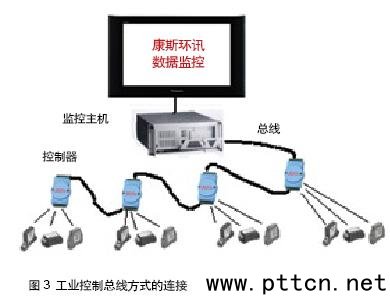 采用總線方式的工業(yè)控制總線,用一根總線可以連接所有的控制器,而控制器又可以連接儀器儀表,總線上傳輸?shù)氖菙?shù)字信號(如圖3)。