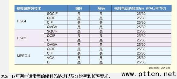 主頁(http://www.130131.com):新生代編解碼技術(shù)促進嵌入式視頻應用的流行(2) 在家庭媒體中心方面,它還要求具備格式轉(zhuǎn)換的功能,以便適應不同的播放設備。例如,一部HD電影存儲在家庭媒體中心中,而STB只能解碼SD內(nèi)容,這時媒體中心就需要具有能力將電影轉(zhuǎn)換成所需的格式。類似地,如果需要在不支持MPEG-4的DVD上播放MPEG-4電影也需要從MPEG-4到MPEG-2的格式轉(zhuǎn)換能力。 針對家庭媒體中心,英特爾將在2006年發(fā)布一個新品牌的平臺,名為Viiv;赩iiv技術(shù)的新型PC將可采用遙控器進行完全控制,支持數(shù)字電視接收器,并優(yōu)化了播放數(shù)字娛樂節(jié)目、錄制電視節(jié)目、播放HD音頻/視頻等應用。 H.264將成IP可視電話的主流壓縮技術(shù) 目前,IP可視電話的編解碼格式多為H.263和H.264,滿足實時需要的幀率在PAL制時為每秒25幀,而在NTSC制時為每秒30幀。面向一般用戶類產(chǎn)品,CIF(352x288)分辯率即可滿足要求。目前,VGA(640x480)和D1分辯率不是視頻通信應用的典型要求。不過,面向高端會議電話系統(tǒng),分辨率可進一步提高到SVGA(800x600)或XVGA(1024x768)。當然還有更高分辨率的XGA和SXGA,所面向是大屏幕或電視墻應用,這就需要極高的帶寬,或者是直接采用電視線纜傳輸信號。表2列出了IP可視電話常用的編解碼格式以及分辨率和幀率要求。