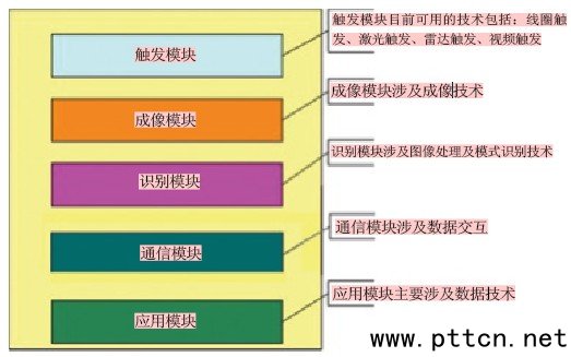 圖2 識別模塊過程示意圖 通信模塊:根據(jù)通信協(xié)議,識別模塊跟與之相連的設(shè)備進(jìn)行數(shù)據(jù)交互。 應(yīng)用模塊:根據(jù)車輛信息化管理的需要,對車輛相關(guān)信息進(jìn)行存儲、查詢、分析等,以達(dá)到應(yīng)用的目的。 汽車牌照識別系統(tǒng)應(yīng)用范圍 城市交通管理 治安卡口大多設(shè)置在道路的路段上,部分設(shè)置在公路收費(fèi)站收費(fèi)車道上,其治安卡口系統(tǒng)聯(lián)網(wǎng)組成架構(gòu)可參考圖3治安卡口系統(tǒng)結(jié)構(gòu)框圖。