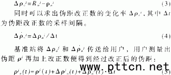其中 為光速, 根據(jù)偽距定位模型,在基準(zhǔn)站設(shè)置一個(gè)基準(zhǔn) GPS接收機(jī),利用多次平均法、聯(lián)測(cè)法或軟件法精確求得基準(zhǔn)站的地心坐標(biāo),再利用每一時(shí)刻的衛(wèi)星地心坐標(biāo)和已知的基準(zhǔn)站地心坐標(biāo)反求出各個(gè)時(shí)刻的真距Roj;鶞(zhǔn)站測(cè)量的偽距與其真距的差值即為偽距改正數(shù):
