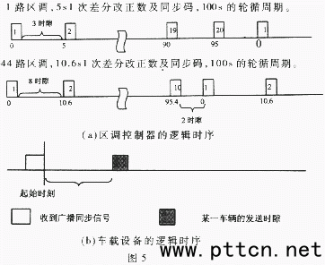 的控制信號(hào),GPS接收機(jī)提供時(shí)間基準(zhǔn),CPU完成所有操作的統(tǒng)一和協(xié)調(diào)。 區(qū)調(diào)控制器每隔5s(用于1路)或10.6s(用于44路)讀取1次GPS監(jiān)控站中的差分信息和調(diào)度命令,而后對(duì)該數(shù)據(jù)進(jìn)行重新打包,插入同步碼,由工作在數(shù)據(jù)組專(zhuān)用集群信道的電臺(tái)廣播出去,收到同步碼后不同的車(chē)輛延遲不同的時(shí)間生成相應(yīng)的時(shí)隙。其后的時(shí)間等待接收所有的車(chē)輛信息并轉(zhuǎn)發(fā)給GPS監(jiān)控站,即區(qū)調(diào)控制器和車(chē)載設(shè)備也是分時(shí)工作的。圖5(a)、(b)分別表示出了區(qū)調(diào)中心和車(chē)載設(shè)備的工作時(shí)序。 4 GPS監(jiān)控站監(jiān)控軟件 GPS監(jiān)控軟件的主要功能是對(duì)轄區(qū)內(nèi)所有的公交運(yùn)營(yíng)車(chē)輛進(jìn)行監(jiān)視,統(tǒng)計(jì)車(chē)輛的正點(diǎn)、狀態(tài)(含報(bào)警)等情況,且能夠?qū)崿F(xiàn)多條線路的同時(shí)跟蹤;儲(chǔ)存差分信息,并轉(zhuǎn)發(fā)來(lái)自調(diào)度平臺(tái)的調(diào)度命令,將車(chē)輛信息轉(zhuǎn)發(fā)給區(qū)調(diào)平臺(tái)。其監(jiān)視方法有多種,主要是以電子地圖為背景為車(chē)輛調(diào)度提供可視化依據(jù)。其中全區(qū)、線路、單車(chē)、報(bào)警、短信息、正點(diǎn)為6種不同的顯示方式,可以根據(jù)不同情況對(duì)需要了解的公交車(chē)輛進(jìn)行查看,從而可以為調(diào)度平臺(tái)提供更加詳實(shí)的車(chē)輛狀況。同時(shí),監(jiān)控終端還具有數(shù)據(jù)存儲(chǔ)、軌跡重放、信息查詢(xún)等功能。