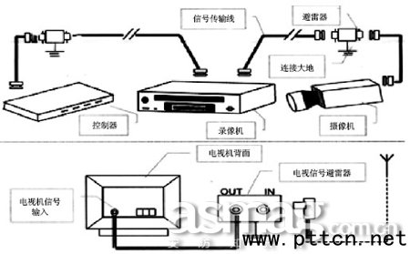RB/BNC-VIDEO4/8/24分別是4路、8路、24路視頻信號避雷器,它是在RB/BNC-VIDEO6基礎(chǔ)上,使多路信號保護(hù)整合而成,方便多路信號集中的視頻設(shè)備使用。每個終端解碼器與矩陣主機的連線上串連信號避雷器,特別使用室外終端解碼器時,須采用避雷器,加裝避雷器時每路要加裝二個,分別靠近主機和解碼器處。 在使用室外攝像機時,在每個室外攝像機與矩陣主機的視頻線上串接電視攝像頭避雷器,在靠近矩陣主機和靠近攝像機的地方分別安裝一個避雷器。 對于多媒體計算機與控制鍵盤,考慮與主機的距離不太遠(yuǎn)可不加裝避雷器,但若它們與主機的距離較遠(yuǎn),則應(yīng)加裝避雷器保護(hù)。 安裝注意的是:接地傳導(dǎo)體必須與用電器外殼地端連接,避雷器接地連接線(有G標(biāo)志)在保證可靠接地時,應(yīng)盡可能縮短其接線長度;信號保護(hù)接地與雷擊引下線接地系統(tǒng)相互獨立,則安裝本產(chǎn)品無需改變原系統(tǒng)接地布置方式(一點接地);有G標(biāo)志的黑色引線與保護(hù)地可靠連接,然后將避雷器的“IN”端與信號傳輸線連接,“OUT”端與需要保護(hù)的設(shè)備連接即可發(fā)揮其保護(hù)作用。 公共天線系統(tǒng)及其設(shè)備接收都是室外感應(yīng)雷電脈沖串入設(shè)備的主要途徑。TV-F是公用天線系統(tǒng)干線型避雷器,帶F接頭和轉(zhuǎn)接線;RB/TV-RF是家用型電視接收天線插座用,有RF接頭和轉(zhuǎn)接線,直接安裝于電視機信號輸入端即可(如圖4所示)。 線路屏蔽和外部防雷接地系統(tǒng) 關(guān)于線路屏蔽和防雷接地應(yīng)遵循下列幾個要點進(jìn)行: · 從最佳防雷效果的角度來講,所有信號線路最好能套金屬線槽、線管,并將屏蔽線槽良好接地; · 監(jiān)控系統(tǒng)整個布線范圍應(yīng)處于該系統(tǒng)所在位置避雷針的保護(hù)范圍內(nèi)。如果有較分散的攝像機可能受到直接雷擊,應(yīng)當(dāng)首先對其防直接雷擊系統(tǒng)進(jìn)行改造完善后,再進(jìn)一步對其實施防感應(yīng)雷方案; · 監(jiān)控系統(tǒng)接地一般采用聯(lián)合接地方式,即將各種地線(防雷地、交流工作地、避雷器保護(hù)地等)連接到同一地網(wǎng)上,以防止各種可能的地電位反擊。如果有條件設(shè)置專用保護(hù)接地,能進(jìn)一步防止交流工頻干擾,但一定要將專用接地和防雷接地之間設(shè)置間隙型共地連接器;