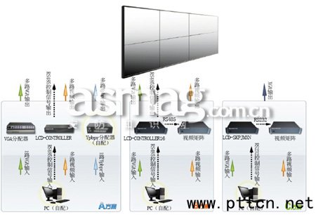 圖1 LCD監(jiān)視器的核心原理流程圖 LCD液晶屏拼接技術(shù)應(yīng)用 如今,大屏幕拼接顯示產(chǎn)品是當(dāng)前及未來中央控制室終端顯示的必然首選。大屏幕拼接也是在最近幾年才快速發(fā)展起來的終端顯示產(chǎn)品,在許多行業(yè)中得到了充分的應(yīng)用,比如電視臺、航天、公安、交通等領(lǐng)域。大屏幕拼接與單臺監(jiān)視器相比,其突出的優(yōu)點是能夠?qū)⑺酗@示單元通過圖像處理器及圖像控制軟件的控制,組合成一個或多個大畫面,在實現(xiàn)任意拼接組合的同時,也可實現(xiàn)圖像的疊加、漫游、縮放等特殊功能(圖2為LCD液晶屏拼接系統(tǒng)原理示意圖)。