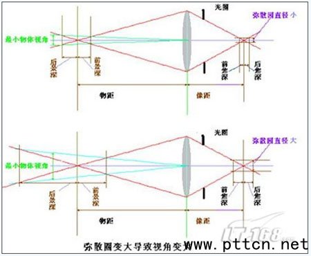 ![]() 圖2 彌散圈與景深的關(guān)系