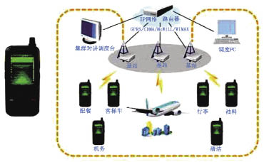 6) 航空港口的需求 航空與碼頭的無線頻點相當有限,通過SMART-PTT解決了頻點不足的困難; 例如,圖7是系統(tǒng)為民航客戶提供的多功能、多應用的一體化通信模式,包括:點對點語音,群組語音,數(shù)據(jù)通信,提升了民航用戶的群組通信效率和快速反應能力。圖中的公網包括:GPRS、CDMA、TD-SCDMA、CDMA2000、WCDMA等網絡,也可應用于McWiLL、WiMAX等專網中。