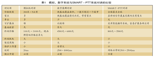 主頁(http://www.130131.com):SMART-PTT集群的優(yōu)勢及行業(yè)應用 1、SMART-PTT集群與傳統(tǒng)集群對講方式的比較(見表1) 2、SMART-PTT集群的行業(yè)應用 1) 交通警察需求 交通警察通過SMART-PTT向中心匯報各路段的交通情況,中心對整體信息進行匯總,可以及時公布現(xiàn)場信息。在事故現(xiàn)場可快速有效指揮與處置; 2) 城市處理需求 管理人員利用SMART-PTT可以在城市的任何地方向中心或同事進行語音通信,協(xié)調工作,提升數(shù)字城管的信息化建設水平; 3) 公安系統(tǒng)需求 現(xiàn)有的公安集群系統(tǒng)一般只能覆蓋一個城市,對于多個城市進行查案時,SMART-PTT集群將發(fā)揮巨大作用,它可聯(lián)通全國各城市進行協(xié)調工作; 4) 物流派送業(yè)需求 快遞人員通過SMART-PTT可以向中心或其他城市的同事進行溝通,可即時了解物品的派送情況,便于工作協(xié)調及準確向客戶報告投遞狀況; 5)出租車調度需求 出租車司機利用SMART-PTT可以和中心、同事進行溝通,可以就近按排司機為客戶服務,很好協(xié)調運輸工作;
