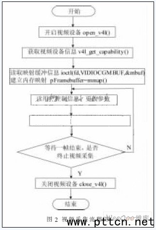 2.1基于Video4 Linux的視頻采集 Video4 Linux(簡稱“V4L”)是Linux中關(guān)于視頻設(shè)備的內(nèi)核驅(qū)動,它是針對視頻設(shè)備的應(yīng)用程序編程提供的一系統(tǒng)接口函數(shù)。視頻采集的基本流程如圖2所示。利用V4L對USB攝像頭的編程需要用到Linux下2個系統(tǒng)調(diào)用,分別是ioctl()調(diào)用和mmap()調(diào)用。 在V4L標(biāo)準(zhǔn)中提供了多個數(shù)據(jù)結(jié)構(gòu)和控制命令,程序通過調(diào)用函數(shù)對設(shè)備進(jìn)行控制,完成視頻采集的任務(wù)。ioctl()函數(shù)中主要的設(shè)備控制命令有: (1)VIDIOCGCAP:獲取采集設(shè)備基本信息,比如支持最大最小分辨率等; (2)VIDIOCSPICT、VIDIOCGPICT:分別為設(shè)置和獲取采集圖像的各種屬性; (3)VIDIOCGMBUF:獲取緩沖區(qū)信息,比如每幀大小、最多支持的幀數(shù)等; (4)VIDIOCMCAPTURE:捕捉圖像,獲取圖像信息; (5)VIDIOCSYNC:等待采集一幀圖像完畢。 應(yīng)用程序獲取攝像頭采集的圖像數(shù)據(jù)有兩種方法,分別是read()(直接讀取的方法)和mmap()(內(nèi)存映射的方法)。mmap()系統(tǒng)調(diào)用使得進(jìn)程之間通過映射同一個文件而實現(xiàn)內(nèi)存共享,優(yōu)點是效率高,因為進(jìn)程可以直接讀寫內(nèi)存,而不需要任何數(shù)據(jù)的拷貝,加速了I/O訪問,本系統(tǒng)就采用此方法。 (中國集群通信網(wǎng) | 責(zé)任編輯:陳曉亮) |