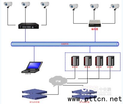 主頁(http://www.130131.com):上海世博會中國國家館視頻監(jiān)控錄像存儲技術(shù) 【中國集群通信網(wǎng)】本文通過對世博會中國國家館視頻監(jiān)控系統(tǒng)的描述,對重大視頻監(jiān)控項目的錄像文件存儲技術(shù)進(jìn)行綜合性的評價。首先描述國家館的視頻監(jiān)控系統(tǒng)的組成特點和工程要求;其次介紹世博會視頻安全防范監(jiān)控錄像存儲的技術(shù)特點;最后通過實際的現(xiàn)場實驗驗證,并得出視頻監(jiān)控錄像存儲技術(shù)的應(yīng)用特點。 1、世博會中國國家館簡介 上海世博會中國國家館建筑外觀以“東方之冠”的構(gòu)思主題, 表達(dá)中國文化的精神與氣質(zhì)。國家館居中升起、層疊出挑,成為凝聚中國元素、象征中國精神的雕塑感造型主體--東方之冠;地區(qū)展館水平展開,以舒展的平臺基座的形態(tài)映襯國家館,成為開放、柔性、親民、層次豐富的城市廣場;二者互為對仗、互相補(bǔ)充,共同組成表達(dá)盛世大國主題的統(tǒng)一整體。國家館、地區(qū)館功能上下分區(qū)、造型主從配合,空間以南北向主軸統(tǒng)領(lǐng),形成壯觀的城市空間序列,形成獨一無二的標(biāo)志性建筑群體。綜合國家館的結(jié)構(gòu)和獨特的造型,視頻監(jiān)控系統(tǒng)的建立可以有效保障場館日常運行,其系統(tǒng)建設(shè)也是很具有挑戰(zhàn)性的。 2、世博會中國國家館視頻監(jiān)控系統(tǒng) 為了滿足世博場館安全和科學(xué)系統(tǒng)化管理的需要,為了對隨時發(fā)生的事件進(jìn)行全面、及時地了解和追蹤,對意外情況能迅速做出正確判斷和反應(yīng),并給出正確、快速的指揮和處理,整個場館的監(jiān)控系統(tǒng)前端設(shè)備采用的攝像機(jī)數(shù)量超過300路高清,視頻錄像文件的存儲保存方式采取硬盤錄像機(jī)外掛IPSAN的方式,存儲時間大約要在兩周以上,總存儲容量需求在100TB左右。其錄像存儲結(jié)構(gòu)如下所示: