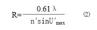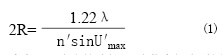 式(2),即為理想光學系統(tǒng)的衍射分辨力公式。