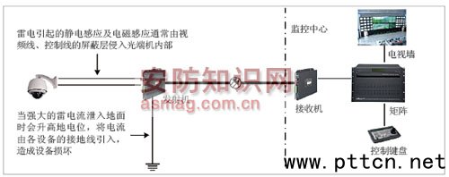 圖 雷電破壞設備示意圖 雖然雷電的破壞形式多種多樣,但還是可以通過采取科學的防護措施來降低光端機故障發(fā)生幾率。首先,保證接地裝置效果良好是防雷措施的前提,因為所有感應電流最后都是要泄入大地的。一般而言,接地電阻越小泄流效果越好,通常將接地電阻控制在4歐姆以內為佳,可使用接地鉗表對接地電阻進行測量。對于某些土壤電阻率高的地方,可以考慮在土壤中加入降阻劑,從而降低接地電阻。其次,前端設備要加裝浪涌保護器,正常電壓時,浪涌保護器呈高阻狀態(tài),只有很小的泄漏電流,功率損耗很小,當線路中出現(xiàn)過壓時,浪涌保護器呈低阻狀態(tài),過電壓以放電電流的形式通過浪涌保護器流入大地,過電壓被抑制下來,浪涌電壓過后,線路電壓恢復正常時,浪涌保護器又呈高阻絕緣狀態(tài),因此浪涌保護器必須有良好的接地裝置與之配合。前端攝像機的視頻信號輸出口和發(fā)射機的視頻輸入口處接浪涌保護器,若發(fā)射機連有其他一些數(shù)據線時,需要在控制信號線的起始端和結束端加裝數(shù)據防雷器,并在攝像機和光端機的電源輸入端也加上電源防雷器等防雷設備。裝防雷器時務必使防雷器緊貼接入口,若防雷器距離視頻口、數(shù)據口太遠是發(fā)揮不了防雷效果的。 加好防雷設備后,剩下的便是接地網的設計問題。接地樁一定要打到位,保證光端機良好接地,一個好的低阻抗接地網設計能夠保證系統(tǒng)中的防雷設備發(fā)揮良好效果且能有效均衡整個傳輸系統(tǒng)內各部位電壓,防止地電位差對線路中設備的干擾,同時也可有效避免地電位反擊對設備的損壞。 光端機的調試 做好以上幾點后,就要開始正常的調試了,主要是對光纖和數(shù)據通道的調試。由于光端機數(shù)據的可選類型較多,根據現(xiàn)場的實際需求不同,現(xiàn)場使用的光端機數(shù)據類型也不盡相同,在調試時一定要參照相應的說明書,按照說明書上的數(shù)據撥碼和接口定義來進行數(shù)據接線。 由于光端機現(xiàn)場安裝的環(huán)境復雜,有些用戶在調試不通的情況下通常首先懷疑產品有故障,其實光端機產品技術已非常成熟,產品出廠前都經過反復測試與拷機,所以產品本身問題可能性較小,因此,在現(xiàn)場有問題時首先需要考慮的是安裝問題,可以從以下幾個方面去排查: ·光纖本身沒有經過測試,光路不通或不穩(wěn)定或光衰減過大等; ·前端設備故障,如攝像機沒有視頻或沒通電等; ·后端設備故障,如監(jiān)視器無視頻,鍵盤控制協(xié)議不對,本身不能控制等; ·連接線路故障,如視頻頭沒的焊接好不通,控制線接錯,或連接線交叉接錯、接反等。 以上現(xiàn)象尤其是線路故障發(fā)生的概率最大,在遇到問題時需要仔細檢查。排除故障時,可以采用排除法,一個設備一個設備排除,最后準確判斷問題關鍵所在。在判斷光端機是否有問題時建議用戶將發(fā)射機與接收機放在一起近距離測試,如若還不通,則為光端機本身故障,就需要跟廠家聯(lián)系調換了。為了減少問題,用戶盡可能在安裝前,近距離測試光端機,這樣便能快速通過安裝與調試,節(jié)省工期。 光端機日常保養(yǎng) 通常狀況光端機的工作環(huán)境相當惡劣,使用時要注意保持光纖頭的清潔。光端機對灰塵非常敏感,而由于光端機運輸過程中或是客戶使用一段時間后,都有可能在光纖口處出現(xiàn)灰塵或雜物造成堵塞,從而影響視頻及數(shù)據的正常傳輸,此時可使用工業(yè)無水酒精和無塵紙對光纖頭進行清洗,避免粘附灰塵。 光端機內部的光纖跳線與外部光纖是通過適配器連接的,通常適配器為陶瓷管芯,在插拔光纖頭時要特別注意,切勿用力不當以防將陶瓷套管擠裂或是壓碎,造成光端機無法正常傳輸信號。