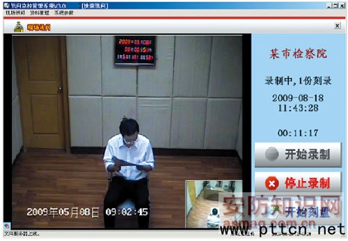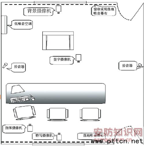主頁(yè)(http://www.130131.com):訊問(wèn)同步錄音錄像系統(tǒng)技術(shù)要點(diǎn) 【中國(guó)集群通信網(wǎng)】整個(gè)訊問(wèn)監(jiān)控管理指揮系統(tǒng)由前端、傳輸、控制和存儲(chǔ)顯示三部分構(gòu)成,下面就每部分的具體需求及實(shí)現(xiàn)技術(shù)要點(diǎn)做個(gè)說(shuō)明。 前端采集部分 此部分由攝像機(jī)、監(jiān)聽(tīng)拾音器和輔助設(shè)備構(gòu)成。 本次訊問(wèn)系統(tǒng)建設(shè)要求攝像機(jī)全部隱蔽安裝,實(shí)際采用貼膜的單向玻璃,攝像機(jī)在玻璃后面。單向玻璃對(duì)光線會(huì)有一定影響,因此要采用高分辨率和支持低照度的攝像機(jī)。 · 背景攝像機(jī):裝在審訊人員的對(duì)面或側(cè)面,用于對(duì)整個(gè)房間的全景攝像,并支持低照度; · 簽字?jǐn)z像機(jī):安裝在訊問(wèn)椅正上方,要求能看清楚嫌疑人在草稿紙上寫的字。經(jīng)過(guò)測(cè)試,半球攝像機(jī)不能滿足看清字的要求,改用一體化攝像機(jī),能自動(dòng)對(duì)準(zhǔn)訊問(wèn)椅上的文字并看清楚,達(dá)到設(shè)計(jì)要求; · 特寫攝像機(jī):安裝在嫌疑人正前方天花板的吊頂位置,要求能看清嫌疑人的面部表情,同樣需要自動(dòng)對(duì)焦功能,采用和簽字一樣的一體化攝像機(jī); · 高清晰的室內(nèi)球機(jī):安裝在角落上,方便領(lǐng)導(dǎo)能夠全方位查看整個(gè)訊問(wèn)室的各種細(xì)節(jié),考慮到實(shí)際情況,采用目前市場(chǎng)上最小的4寸球機(jī)。 在每間訊問(wèn)室里各隱蔽安裝1-2個(gè)專業(yè)監(jiān)聽(tīng)麥克風(fēng),麥克風(fēng)安裝在靠近被審訊人的兩側(cè);同時(shí)配備了錄音專用專業(yè)調(diào)音臺(tái),調(diào)節(jié)聲音參數(shù),以便達(dá)到最佳的聲音效果。 溫濕度顯示屏:顯示訊問(wèn)時(shí)的日期、時(shí)間、溫度和濕度,具備視頻輸出口,可以直接輸出到示證電視機(jī)上;通過(guò)RS485控制線連接到訊問(wèn)專用硬盤錄像機(jī),將時(shí)間、溫濕度信息疊加到錄像文件上。 為保證嫌疑人的安全,防止刑訊逼供和長(zhǎng)時(shí)間連續(xù)訊問(wèn),在訊問(wèn)椅上配置嫌疑人用無(wú)線報(bào)警按鈕,一旦按下報(bào)警信號(hào)直接傳送到法警監(jiān)控室,引發(fā)電子地圖閃爍、警燈閃爍和警鈴響動(dòng)。 在訊問(wèn)桌上,還安裝有錄音錄像控制按鈕、報(bào)警按鈕、網(wǎng)絡(luò)接口、電源插座、打印機(jī)和臺(tái)式電腦。在電腦上安裝一套訊問(wèn)管理軟件客戶端,實(shí)現(xiàn)筆錄輸入、存儲(chǔ)、打印,以及指揮等功能。 訊問(wèn)室里以上所有設(shè)備,均由機(jī)房UPS統(tǒng)一供電(訊問(wèn)室施工示意圖如圖1)。為保證安全,訊問(wèn)室墻面、桌角等要做軟包處理,所有的電源插孔都要加防護(hù)罩,杜絕嫌疑人自殘可能。