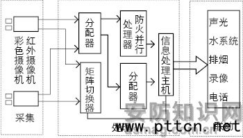 圖 雙波段圖像型火災(zāi)探測系統(tǒng) VSD系統(tǒng)主要的應(yīng)用場所包括體育館、大型展覽館、大型會議廳、商場等。目前,VSD系統(tǒng)已經(jīng)成功應(yīng)用在世界范圍內(nèi)許多消防工程中。 另外,雙波段圖像型火災(zāi)探測系統(tǒng)則采用CCD攝像機(jī)作為探測系統(tǒng)的前端,可實(shí)現(xiàn)防火、防盜和一般監(jiān)控三位一體;采用防火并行處理器,能同時(shí)對多只雙波段攝像機(jī)獲取的信息進(jìn)行及時(shí)處理:監(jiān)控距離遠(yuǎn)(0.5~60m),適合大空間建筑的防火;能對監(jiān)控現(xiàn)場進(jìn)行實(shí)時(shí)錄像,保留現(xiàn)場的第一手資料,為事后分析、處理提供依據(jù);具有聯(lián)動控制功能,能迅速聯(lián)動聲光報(bào)警;自動滅火、排煙、錄像、報(bào)警電話等系統(tǒng),將火災(zāi)損失降低到最低限度。