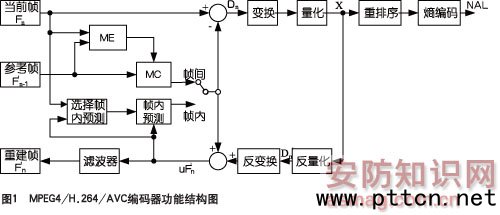 主頁(http://www.130131.com):淺談現(xiàn)行國際標(biāo)準(zhǔn) 【中國集群通信網(wǎng)】現(xiàn)行國際視頻編碼標(biāo)準(zhǔn) 近年來,視頻編碼技術(shù)得到了迅速發(fā)展和廣泛應(yīng)用,并且日臻成熟,其標(biāo)志是多個(gè)關(guān)于視頻編碼的國際標(biāo)準(zhǔn)的制定。其可分為兩大系列:即國際標(biāo)準(zhǔn)化組織(ISO)和國際電工委員會(huì)(IEC)的運(yùn)動(dòng)圖像專家組MPEG(Motion Picture Expert Group)關(guān)于活動(dòng)圖像的編碼標(biāo)準(zhǔn)MPEG系列,以及國際電信聯(lián)盟(ITU)的視頻編碼專家組VCEG(Video Coding Expert Group)制定的視頻編碼標(biāo)準(zhǔn)H.26X系列。 MPEG4/H.264/AVC標(biāo)準(zhǔn) MPEG4/H.264/AVC是一種有損壓縮,以處理后的圖像無限接近和還原真實(shí)圖像為目標(biāo)。MPEG4/H.264/AVC對(duì)編解碼器如何實(shí)現(xiàn)并沒有明確規(guī)定,而是規(guī)定編碼視頻比特流的句法和該比特流的解碼方法。這種技術(shù),使得各個(gè)廠商的編碼器和解碼器在此框架下應(yīng)能夠互通,在實(shí)現(xiàn)上具有較大靈活性,而且有利于相互競爭。 從圖1和圖2可以看出,MPEG4/H.264/AVC和以前標(biāo)準(zhǔn)(如H.261、H.263、MPEG-1、MPEG-4)的編解碼器功能塊組成并沒有什么區(qū)別,仍是變換和預(yù)測(cè)相結(jié)合的混合編碼法,不同點(diǎn)在于各功能塊的細(xì)節(jié)。