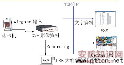 圖1 GPS定位顯示產(chǎn)品設(shè)備地理位置 集成需求 在現(xiàn)在的行業(yè)發(fā)展中,系統(tǒng)整合的聲音一浪高過一浪。就拿門禁產(chǎn)品來說,無論是傳統(tǒng)門禁行業(yè)對于視頻產(chǎn)品的整合,還是視頻產(chǎn)品對門禁信息的整合,都說明了系統(tǒng)的融合,將是下一個發(fā)展趨勢。 視頻服務(wù)器自身的接口,可以比較容易的接收門禁讀卡器讀取到的門禁卡片信息,然后通過網(wǎng)絡(luò)將卡片信息交由監(jiān)控中心進行處理(如圖2)。刷卡時,刷卡人的信息會疊加顯示在相應(yīng)的監(jiān)控畫面上,無論是實時,還是事后對身份的求證或當(dāng)時畫面的調(diào)閱,都將變得比以往更加容易,這也是提高效率、加強管理的手段之一。