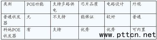 主頁(http://www.130131.com):POE供電光纖收發(fā)器在網(wǎng)絡(luò)監(jiān)控中的應(yīng)用 【中國集群通信網(wǎng)】隨著安防行業(yè)的不斷發(fā)展,在傳輸信號的過程中對載體提出了更高的要求。光口交換機固然有其成本,市場化程度高等優(yōu)點,但在網(wǎng)絡(luò)攝像機越來越多的運用到光纖收發(fā)器加光纖交換機的方案。本文就來探討一下科地的光纖收發(fā)器解決方案的特點。科地光纖收發(fā)器產(chǎn)品的特點: 1、采用MINI型的設(shè)計、用料充足,工作穩(wěn)定,抗干擾性強。 2、帶有POE模塊接口能為終端(主要用于給網(wǎng)絡(luò)攝像機、無線AP、IP電話)供電 3、采用業(yè)內(nèi)穩(wěn)定性和可靠性較高的芯片,保證了產(chǎn)品的品質(zhì)。 4、提供了額外的供電接口,方便同時為兩個終端提供電壓。 5、符合802.3.af以太網(wǎng)標(biāo)準(zhǔn)。 與普通光纖收發(fā)器功能的對照表: