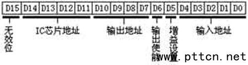 ![]() ▲圖2 MAX4357數(shù)據(jù)和控制時序圖 MAX4357提供了2種編程模式:獨(dú)立地址輸出模式和完整矩陣模式。由MODE引腳的高低電平進(jìn)行選擇。 當(dāng)MODE=0時,DOUT與DIN直接連接,16位控制系列字同時發(fā)送給所有芯片,只有A3~A0和此16位系列控制字中D14~D11被編程。16位控制字的組成如圖3所示。