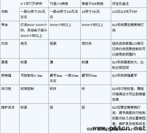 ![]() 從技術(shù)層面來看,PDP在防灼傷方面有致命的弱點(diǎn),且制造商單一,選擇余地少,基本上正在逐步淡出拼接市場(chǎng)。而DLP在色彩表現(xiàn)、壽命、占用空間和可維護(hù)性等方面有所不足,最突出的亮點(diǎn)是拼縫。與之相反,LCD拼接占有綜合優(yōu)勢(shì)的地位,其主要弱勢(shì),實(shí)際上也是唯一的弱勢(shì),是拼縫太寬。 在數(shù)字告示系統(tǒng)中使用拼接顯示系統(tǒng)作為顯示終端,應(yīng)綜合考慮系統(tǒng)設(shè)計(jì)的整體情況及各類拼接顯示技術(shù)的優(yōu)缺點(diǎn),選擇最適當(dāng)?shù)漠a(chǎn)品和技術(shù),力爭以最低的成本構(gòu)造最適宜的系統(tǒng)投入使用。一般情況下,建議盡量使用LCD拼接,在顯示地圖、流程圖和工程設(shè)計(jì)圖紙等要求精細(xì)顯示,不允許丟失顯示細(xì)節(jié)的數(shù)字告示系統(tǒng)中,則可選用DLP背投拼接技術(shù)。