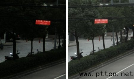 實(shí)際應(yīng)用如圖5所示,圖中左邊的是原始圖片,右邊是經(jīng)過(guò)預(yù)處理之后的圖片,可以明顯看到預(yù)處理之后的圖片所有綠葉的細(xì)節(jié)、以及左上方的電線(畫(huà)面中較暗的部分)更加明顯,而左下方的摩托車(chē)反光鏡(畫(huà)面中亮的部分)并沒(méi)有什么太大的變化。這樣就能夠獲得更多的細(xì)節(jié)信息。