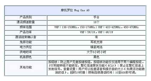 主頁(http://www.130131.com):低調(diào)中的奢華 MOTO對講機(jī)Mag One A8盡顯英雄本色 無論是民用市場還是警用,對講機(jī)在生活中扮演著一個多變的角色,既滿足了安防市場需求,也滿足了警用作業(yè)需要,同時更不忘了為廣大的消費(fèi)者服務(wù),相信無線電愛好者一定對手臺難舍難棄吧。 摩托羅拉Mag One A8再次成為焦點(diǎn),16個通訊頻道,頻率范圍為VHF:136-150MHz,150-174MHz;UHF:403-425MHz,450-470MHz;該款產(chǎn)品沒有顯示屏,因此也不具備背景照明功能。與大多數(shù)對講機(jī)相同的是,此款產(chǎn)品也具備通話結(jié)束確認(rèn)音,支持免持功能,耳機(jī)則是免持最好的通話設(shè)備。黑色機(jī)身,橙色LOGO,此款產(chǎn)品不免給人以低調(diào)奢華的感受。