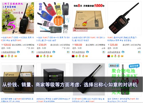 主頁(http://www.130131.com):淘寶購物秘籍之對講機采購篇 在淘寶這個超級大型賣場中,想要以合適的價錢,買到稱心如意的對講機,是需要一些些技巧的。下面呢,給大家介紹幾種能夠買到超值商品的小技巧。
