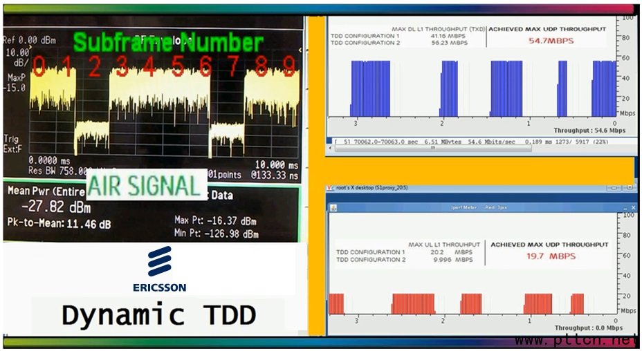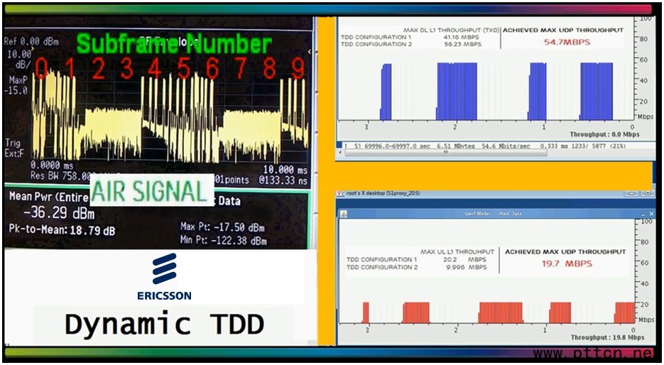 主頁(http://www.130131.com):愛立信完成全球首次TD-LTE動態(tài)自適應TDD技術演示 12月18日消息,愛立信今日向中國移動成功演示了TD-LTE動態(tài)自適應TDD技術,這標志著愛立信成為首個在商用平臺上進行動態(tài)自適應TDD技術驗證的廠商。TD-LTE動態(tài)自適應TDD技術是3GPP LTE Rel-12正在標準化的一項針對TDD的重要性能增強,能夠充分發(fā)掘TDD在數據業(yè)務承載方面的優(yōu)勢,并提高吞吐量和頻譜效率。 據了解,愛立信演示了在20MHz帶寬內,基站根據上下行業(yè)務流量的實時變化,動態(tài)快速地在不同TDD配置(配置1和配置2)之間切換,改變上下行子幀數的配置比例,從而使空口資源更好地適配數據業(yè)務的突發(fā)性和上下行業(yè)務的不對稱性,提高了空口時頻資源的利用率。其中,TD-LTE的不同TDD配置具有不同的上下行資源配置比例,TDD配置1中下行與上行資源(或子幀數)配置比例為6:4,TDD配置2為8:2,因此TDD配置1的上行峰值速率較高,而TDD配置2的下行峰值速率較高。該演示中,終端在保持業(yè)務連續(xù)的條件下,實現了TDD配置1的上行峰值速率(物理層速率: 20.2Mbps, 應用層速率: 19.7Mbps)和TDD配置2的下行峰值速率(TxD,物理層速率: 56.2Mpbs, 應用層速率: 54.7Mbps)。