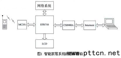 主頁(yè)(http://www.130131.com):基于ARM的智能家居遠(yuǎn)程控制系統(tǒng)設(shè)計(jì) 隨著互聯(lián)網(wǎng)技術(shù)和信息通信技術(shù)向普通家庭生活的不斷普及,如何將消費(fèi)電子、計(jì)算機(jī)和通信融為一體,已成為人們非常關(guān)心的一個(gè)問(wèn)題。智能家電網(wǎng)絡(luò)管理系統(tǒng)能夠?qū)崿F(xiàn)家用電器的網(wǎng)絡(luò)化、智能化管理。通過(guò)該系統(tǒng)將家中的網(wǎng)絡(luò)電器與互聯(lián)網(wǎng)和GPRS網(wǎng)絡(luò)相連,這樣無(wú)論何時(shí)何地,用戶都可以通過(guò)該系統(tǒng)遠(yuǎn)程操縱家用電器。本文主要討論智能家居遠(yuǎn)程控制系統(tǒng)的設(shè)計(jì)與實(shí)現(xiàn)。 智能家居系統(tǒng)的總體結(jié)構(gòu) 智能家居系統(tǒng)的硬件設(shè)計(jì)