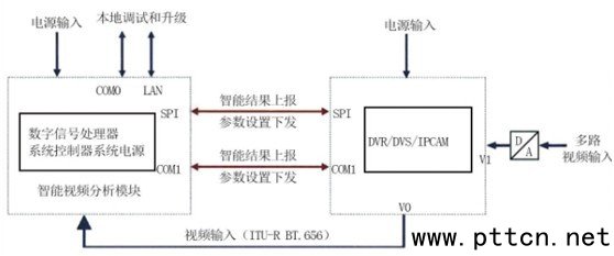 主頁(http://www.130131.com):變被動為主動 實現(xiàn)安防監(jiān)控技術(shù)的革新(2) 下面就功能單一化、產(chǎn)品化、模塊化的智能視頻分析模塊的特征與應(yīng)用作簡要介紹。 圖1為智能視頻分析模塊與DVR/DVS/IPCAM對接應(yīng)用示意圖,由圖可知該智能視頻分析模塊支持LAN接口在線升級;SPI&COMl兩個接口可用于智能視頻分析模塊與DVR/DVS/IPCAM進(jìn)行智能視頻分析結(jié)果數(shù)據(jù)上報以及參數(shù)設(shè)置下發(fā);智能視頻模塊支持標(biāo)準(zhǔn)的ITU—RBT.656數(shù)字視頻輸入。智能視頻分析模塊能與DVR/DVS/IPCAM可做到無縫連接,互為補(bǔ)充,形成完整的網(wǎng)絡(luò)平臺智能視頻監(jiān)控系統(tǒng)。智能視頻分析平臺也能從后端集中視頻源內(nèi)捕捉需要關(guān)注的信息。而這種方式比較適合比如“平安城市”等大型集中視頻監(jiān)控平臺進(jìn)行智能化改造的項目。