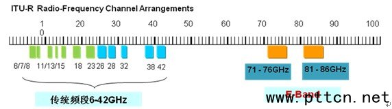 主頁(http://www.130131.com):80GHz頻段E-Band微波應用介紹 12月4日,工信部正式向中國移動、中國電信、中國聯(lián)通頒發(fā)TD-LTE制式4G牌照,中國正式邁入4G時代。根據(jù)第三方分析機構GSMA intelligence的報告預測,到2017年底,全球?qū)⒂谐^128個國家部署約500張LTE網(wǎng)絡。 4G在提供更大的帶寬、給人們帶來更好的移動互聯(lián)網(wǎng)體驗的同時,也會讓運營商的移動承載網(wǎng)面臨挑戰(zhàn)。 隨著國內(nèi)4G牌照的發(fā)放,LTE 網(wǎng)絡將會快速部署。但LTE基站的覆蓋范圍小,部署密度遠高于GSM基站和3G基站,LTE建設將面臨大量的新建站點需求,而部分新建站點光纖資源短缺,國內(nèi)預計將有20%的新建站點光纖資源缺失,使得LTE基站業(yè)務回傳和PTN光纖網(wǎng)絡成環(huán)均面臨壓力。微波作為移動回傳的重要解決方案,能替代或作為光纖的補充,解決光纖短缺問題,實現(xiàn)LTE網(wǎng)絡快速部署。但是傳統(tǒng)微波頻段(6~42GHz)頻譜資源緊張,波道間隔。▏鴥(nèi)目前最大波道間隔為28MHz),難以滿足LTE基站對承載網(wǎng)絡的大帶寬需求。在這種情況下,業(yè)界將眼光投向了能提供超大帶寬的E-Band微波。什么是E-Band微波,E-Band微波傳輸能提供多大帶寬,又適用于哪些應用場景呢? E-Band頻段微波介紹 E-Band射頻波道配置 2000年,ITU-R和ETSI標準組織進行了高頻段71~76GHz和81~86GHz微波的劃分,這就是后來我們常說的E-Band。