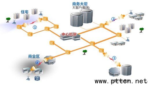 表1 傳統(tǒng)頻段和E-Band對比 從上面的分析數(shù)據(jù)來看,E-Band微波非常適合大帶寬傳輸應用場景,滿足LTE對回傳網(wǎng)絡帶寬需求,結合中國移動的業(yè)務需求,我們可以大致分為以下四種場景。 1. PTN接入層補網(wǎng)成環(huán): 環(huán)網(wǎng)能提高承載網(wǎng)絡的可靠性和容災能力,運營商通常對網(wǎng)絡成環(huán)率都有一定要求,尤其是追求高品質(zhì)的中國移動。但常常由于各種各樣的現(xiàn)實困難,部分站點光纖資源缺失,接入層仍然有相當比例的網(wǎng)絡面臨成環(huán)壓力。E-Band微波可以作為光纖替代,配合現(xiàn)網(wǎng)PTN設備進行成環(huán)補網(wǎng)(目前接入環(huán)的帶寬在1Gbps),解決光纖資源缺失導致PTN網(wǎng)絡無法成環(huán)的問題,為PTN網(wǎng)絡提供環(huán)網(wǎng)保護能力,提升傳輸網(wǎng)絡可靠性。 2. LTE末端基站接入: 在城市密集地區(qū),單基站(S333配置模式下)帶寬需求達900Mbps以上。在1~3Km短距場景下,E-Band微波擁有豐富的頻譜資源,可以用來解決傳統(tǒng)微波頻段資源緊張、傳輸帶寬小的問題,作為末端LTE基站業(yè)務接入,解決部分新建站址光纖缺失的問題,實現(xiàn)LTE基站快速部署。 3. 大客戶專線: 對于數(shù)據(jù)業(yè)務互聯(lián)專線、企業(yè)鏈路租賃等1Gbps以上帶寬需求的業(yè)務,有些大樓因光纖鋪設困難,成本高、周期長而無法部署,E-Band微波可作為IP/MPLS路由器或L2交換機之間的光纖替代,解決光纖和部署困難問題。 4. 綜合業(yè)務接入: E-Band微波提供2.5G大帶寬,可同時輕松承載基站/Wi-Fi、大客戶、寬帶等多種業(yè)務,在光纖缺失,并且有綜合業(yè)務承載需求的場景下,可以通過E-BAND微波大帶寬優(yōu)勢快速部署,從而樹立起領先品牌、吸引更多高價值客戶。